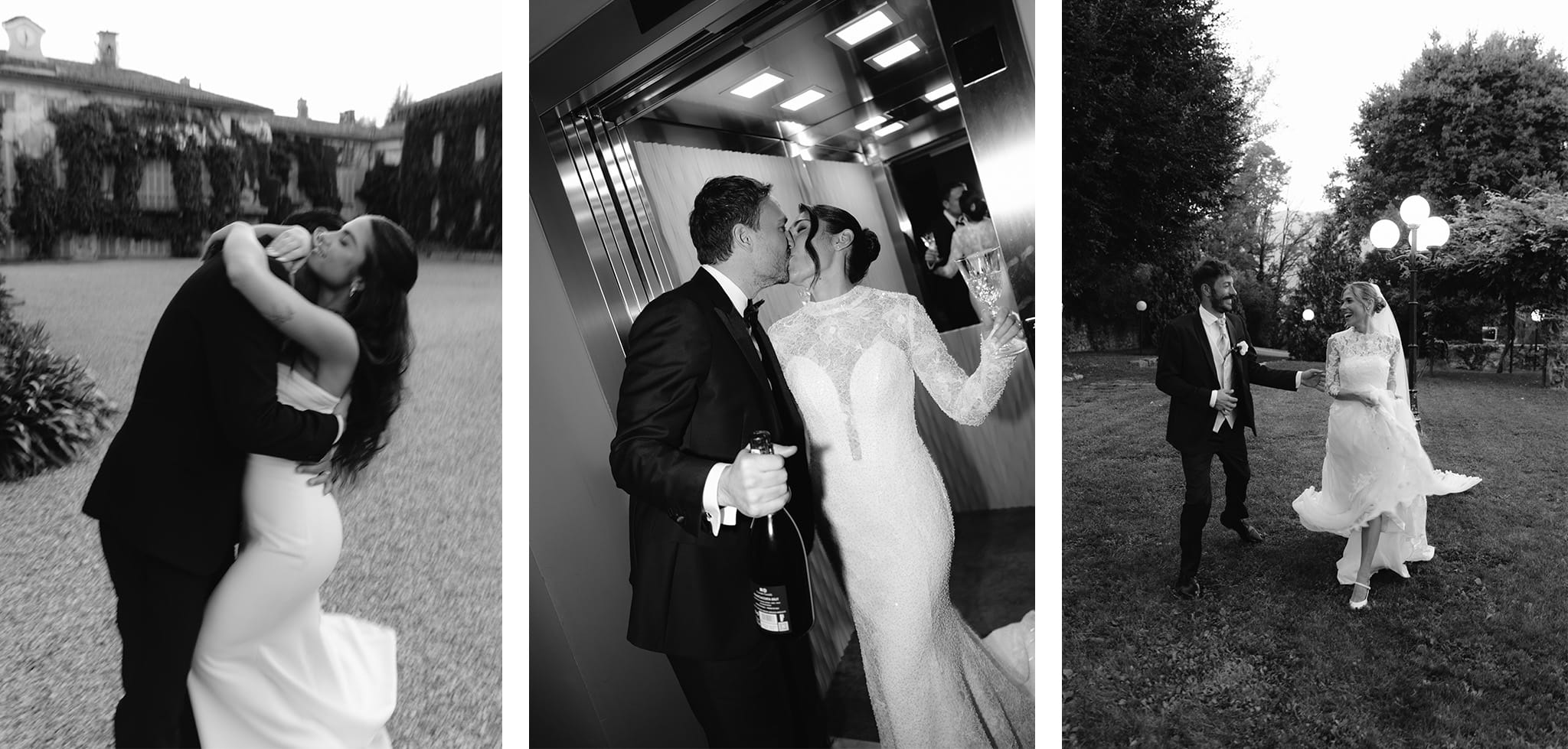 Ottimizziamo tutto per dedicare il giusto tempo ai ritratti agli sposi, suggerendo loro - con leggerezza e complicità - indicazioni su come rivolgere lo sguardo verso noi e la macchina fotografica.